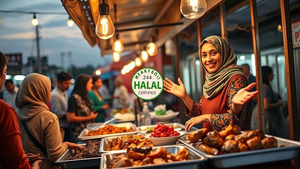 You need to guarantee halal certification complies with local laws and regulations, which often include food safety standards and religious practices. You should work with recognized halal certifying bodies that are authorized by government agencies or relevant authorities. Additionally, documentation and regular inspections are typically required to maintain certification. By understanding these legal requirements, you can confidently promote halal options that meet both religious and legal standards.