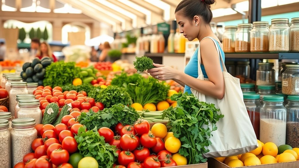 You can reduce food waste while shopping halal by planning your meals ahead and making a detailed shopping list. Stick to your list to avoid impulse buys and buy only what you need. Store leftovers properly to extend their shelf life, and use older ingredients first. Additionally, get creative by repurposing leftovers into new dishes, helping you save money and minimize waste effectively.