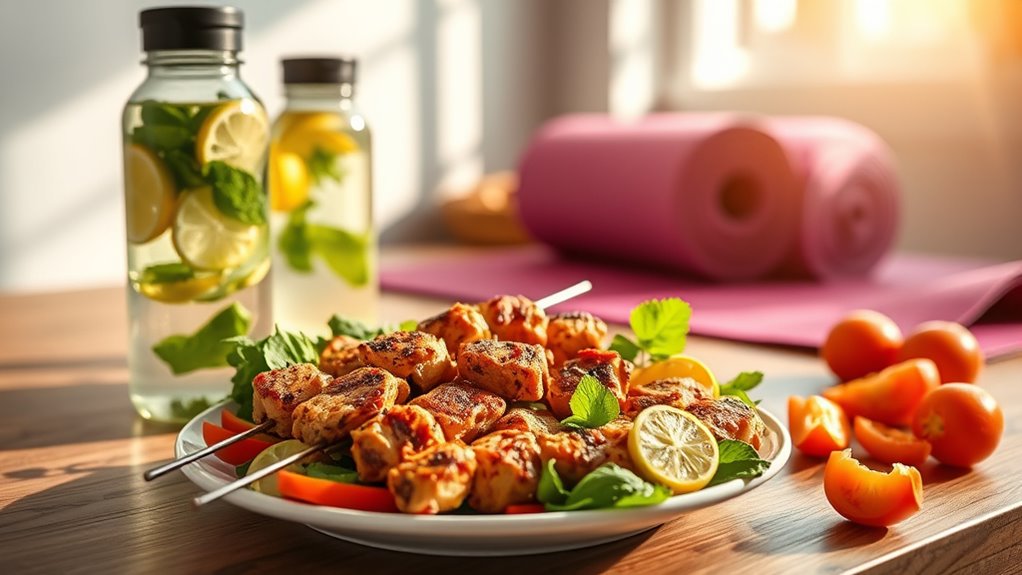 Balancing a halal diet with your fitness and wellness goals is all about mindful choices. Focus on wholesome, ethically sourced foods that nourish your body, like legumes, whole grains, and fresh produce. Don’t forget to incorporate plant-based proteins and keep your meals well-portioned. Stay hydrated with halal-friendly drinks, and consider supplements if needed. By managing meal timing and maintaining a varied diet, you can align your nutrition with your fitness aspirations—there’s even more to explore!