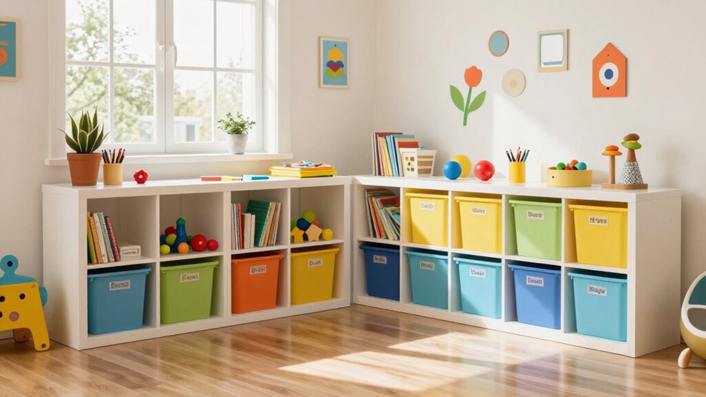 This approach streamlines cleanup and keeps your playroom functional and inviting.