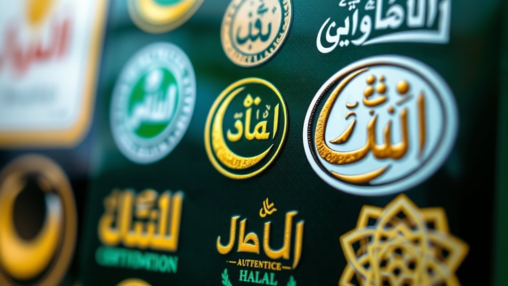 You’ll find that agencies like the Islamic Food and Nutrition Council of America (IFANCA), the Department of Islamic Development Malaysia (JAKIM), and the Halal Authority Australia certify halal symbols across different countries. They conduct rigorous inspections and oversee slaughtering processes to guarantee products meet halal standards. Each country has its own certifying bodies, so it’s crucial to look for their specific logos on packaging to confirm authenticity and compliance.