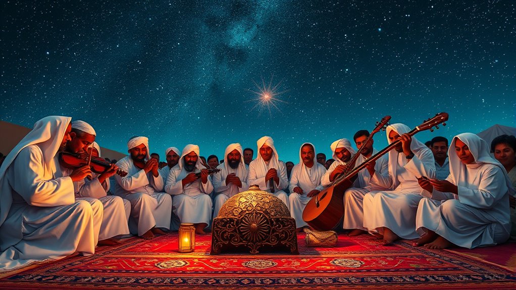 In Islamic music, you’ll find a variety of instruments used across different musical traditions. Commonly, you might hear the oud, a stringed instrument, along with the qanun and ney, which add depth to the melodies. Percussion instruments like the darbuka and tabla also play a significant role, driving the rhythm. Each region may incorporate unique instruments, reflecting its cultural heritage and influences. These diverse sounds create a rich tapestry of musical expression in Islamic culture.