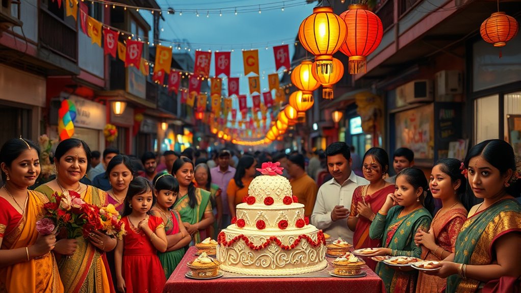 Celebrating Mawlid, the Prophet Muhammad’s birthday, brings communities together in joy and unity. You’ll find people engaged in communal prayers, poetry recitations, and storytelling that highlight the Prophet’s virtues. Colorful decorations set a festive atmosphere, while special dishes and treats are shared among families. Some focus on personal reflection and spiritual growth, emphasizing values like love and kindness. This heartfelt occasion fosters deep connections to heritage and faith, inviting you to explore more about these vibrant traditions.