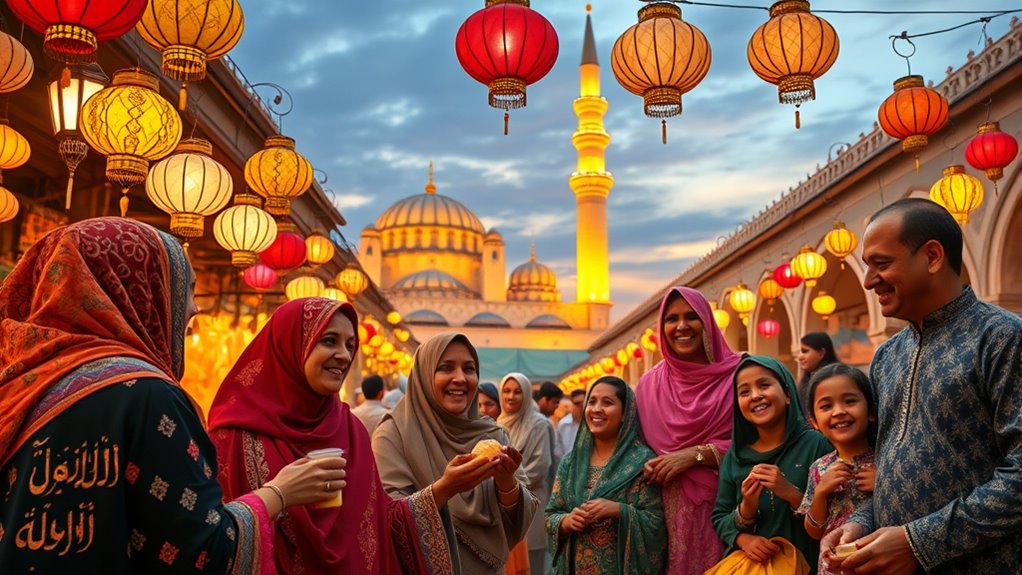 During these festivals, interfaith dialogue often flourishes. As you participate in local events, you’ll notice how non-Muslims join in the festivities, celebrating together with their Muslim friends and neighbors. This openness fosters a spirit of understanding and respect, breaking down barriers and building friendships. You’ll find that inviting others to share in the joy of the festivals creates a sense of unity that transcends religious differences.