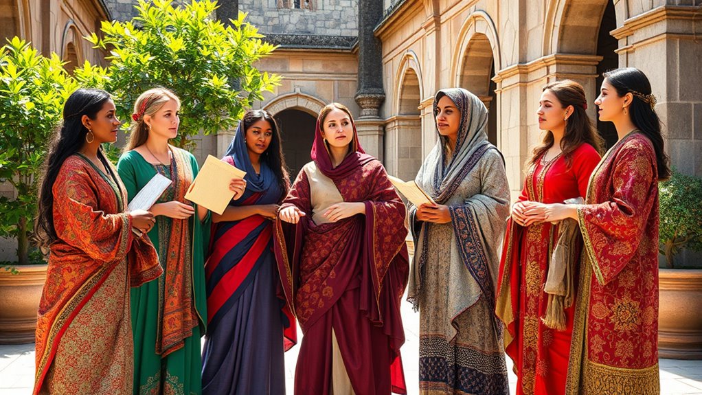Women’s contributions varied widely across Islamic regions due to cultural influences and regional variations. For instance, in the bustling markets of 10th century Baghdad, a female silk merchant might’ve negotiated trade deals, showcasing her business acumen. Meanwhile, in rural areas, women often managed farms and households, adapting to local customs and economies. These differences highlight how women’s roles evolved based on their environment, reflecting both opportunities and challenges unique to their regions.