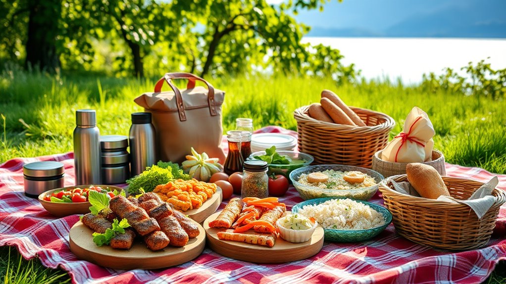 Next, consider portioning your meals in advance. Using airtight containers or resealable bags helps keep everything organized and prevents spills. Label each container with the contents, especially if you’re bringing multiple dishes, so you can quickly grab what you need without rummaging through your bag. This saves time and keeps your picnic tidy, allowing you to focus on enjoying your outing rather than worrying about food safety or mix-ups.