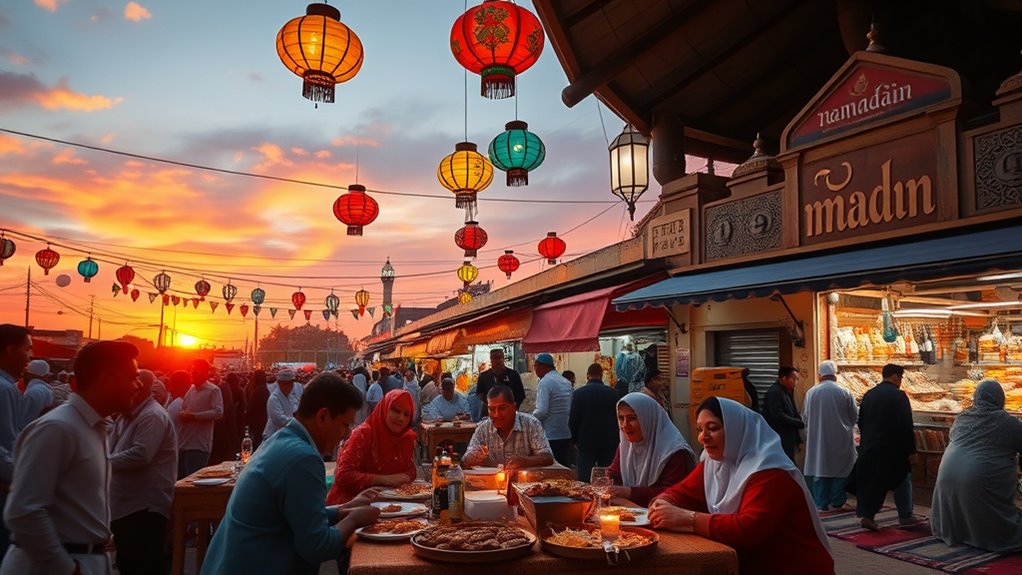 Oh sure, because who wouldn’t want to celebrate Ramadan with a side of cultural festivals? In Muslim-majority countries, you’ll find vibrant Ramadan cultural festivals that light up the nights. You can join traditional iftar gatherings that turn breaking fast into a social extravaganza. Picture yourself feasting on delicious food surrounded by laughter and joy. So, don’t miss out—immerse yourself in these celebrations and make your travel experience unforgettable!