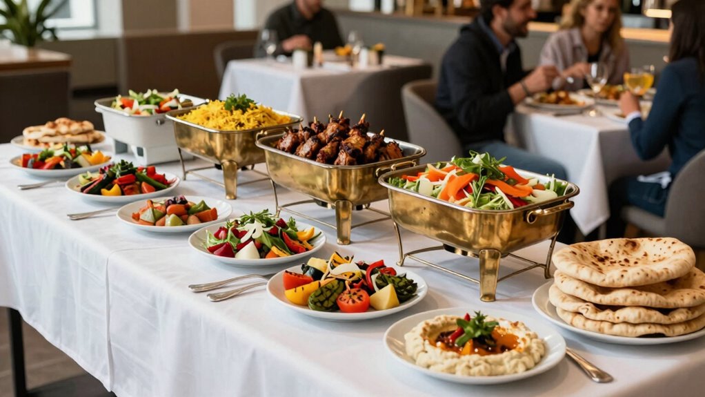 When you come across unexpected non-halal dishes at a buffet, choosing vegetarian options can be a simple and respectful solution. Plant-based choices are often clearly labeled or easier to identify, making it straightforward to avoid non-halal ingredients. Opting for vegetarian options allows you to enjoy a variety of flavors without concern over restrictions, especially when you’re unsure about the ingredients. Many buffets now offer diverse vegetarian dishes that are both satisfying and nutritious. Improving indoor air quality through proper ventilation can also enhance your dining experience, ensuring a comfortable atmosphere. Additionally, opting for energy-efficient models can provide sustainable dining options while minimizing your environmental impact. By focusing on these plant-based choices, you can maintain your confidence and stay true to your dietary needs. This approach minimizes stress and shows respect for the host’s offerings while ensuring you stick to your halal requirements comfortably. Moreover, many of these vegetarian options can be prepared using air fryer techniques, enhancing their flavor and texture while keeping them healthy. Remember, maintaining work-life harmony is essential, especially when navigating social events like buffets. Furthermore, a well-rounded diet including essential gear can support your overall health and well-being during such events.