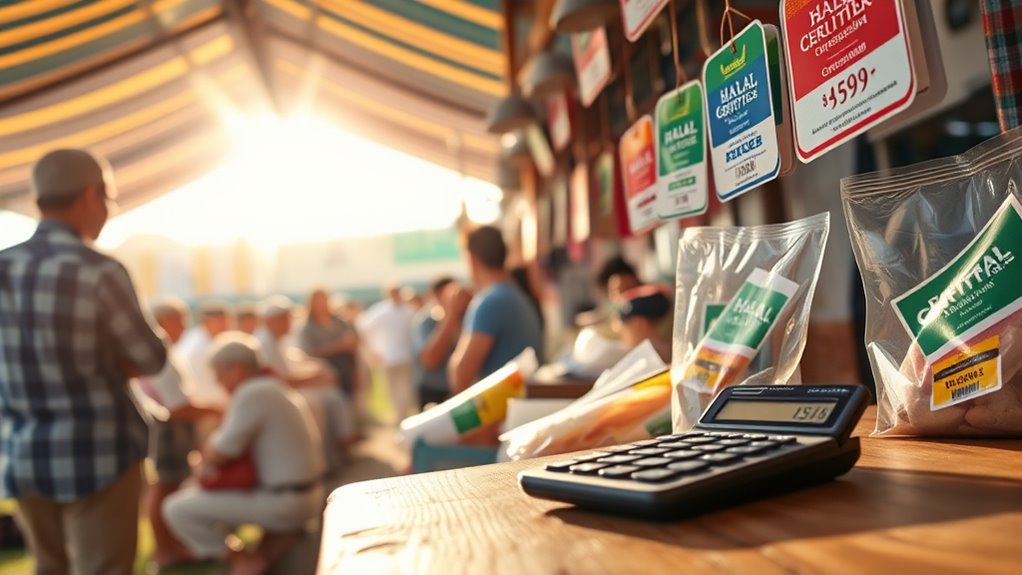 Halal certification costs can vary substantially based on the certifying body and your business needs. You’ll face initial fees, operational changes, and ongoing expenses like annual renewals and audits. Plus, marketing your certified status might require additional investment to attract a more diverse customer base. It’s essential to weigh these costs against the potential market access and benefits. Keep exploring to uncover how to effectively manage these financial aspects for your business.