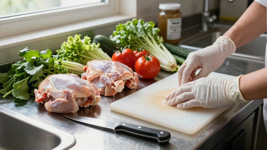 One of the most common mistakes in halal kitchens is failing to separate raw meats from other ingredients, which can easily lead to contamination. This oversight risks violating halal certification standards, as cross-contamination can compromise the legitimacy of the food’s halal status. Additionally, ignoring dietary restrictions, such as avoiding certain additives or ingredients, can cause serious issues for consumers with specific needs. Using the same utensils or surfaces for raw meats and ready-to-eat foods without proper cleaning spreads bacteria and non-halal elements, jeopardizing both safety and compliance. Recognizing these mistakes helps guarantee that all ingredients remain uncontaminated, preserving the integrity of your halal kitchen and respecting the dietary restrictions of your customers. Ensuring color accuracy in your food preparation environment can further enhance the quality and appeal of your dishes. Furthermore, incorporating essential oils for oral health can provide additional benefits in maintaining a hygienic kitchen space. Moreover, understanding the importance of cultural festivals in community engagement can also influence the dining experience you offer. Effective storytelling can also enhance customer trust and loyalty, emphasizing the commitment to halal practices in your kitchen. Proper handling of food is essential for preventing cross-contamination, which can lead to serious health risks and diminish the quality of your offerings.