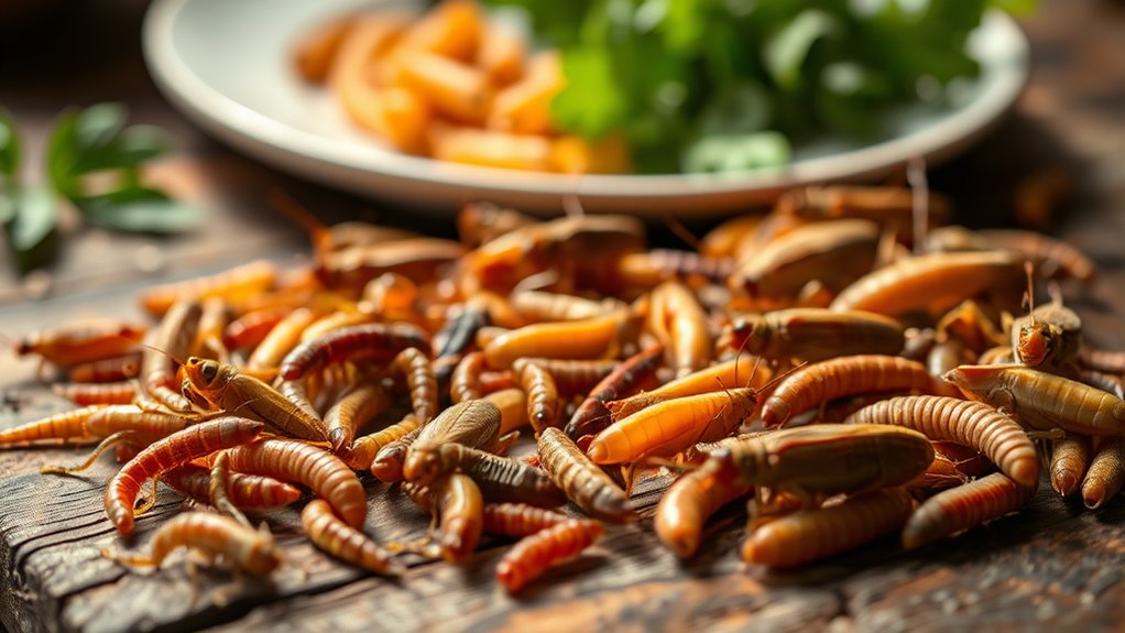 Insect protein can be halal if it’s farmed, processed, and prepared according to Islamic dietary laws. This means the insects must come from controlled, hygienic environments, free from haram substances like pork or alcohol, and handled properly. Reputable halal certification helps confirm compliance with religious standards. If you’re curious about how to confidently include insect protein in your diet without compromising your faith, there’s more to explore in the details ahead.