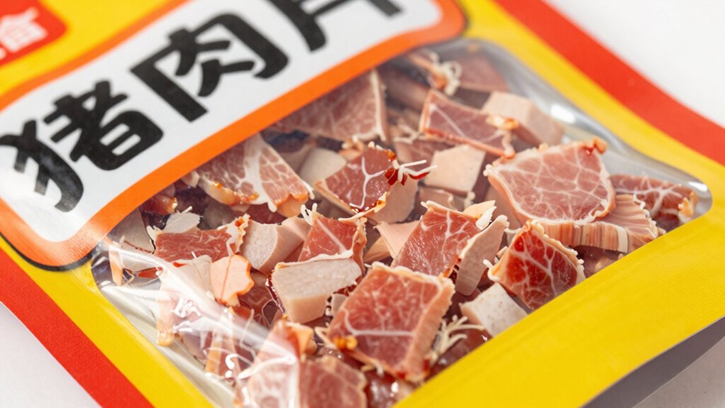 Processing techniques considerably influence the presence of pork in packaged foods. Some methods, like hydrolyzation or fermentation, can break down pork derivatives, making them less recognizable but still present. Additive effects from flavorings, preservatives, or fillers can also introduce pork components without obvious labels. You should check ingredient lists carefully, as processing methods and additives might hide pork derivatives, even if the product doesn’t explicitly mention pork.