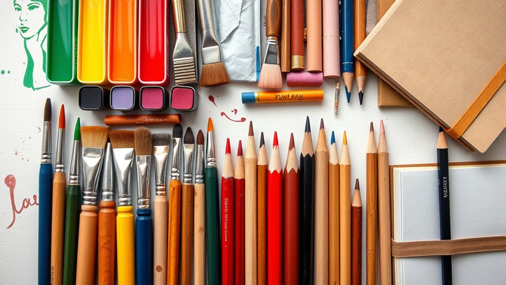 Choosing art supplies that match your skill level and style is like finding a secret weapon for creativity. I recommend starting with versatile, beginner-friendly sets and gradually exploring specialized tools as you grow. Pay attention to the medium you love—whether it’s watercolor, acrylic, or digital—and select quality materials suited for that. Trust your instincts, experiment often, and don’t be afraid to upgrade as your skills and style evolve.