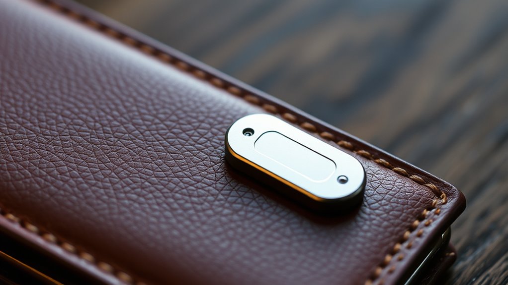 When selecting a Bluetooth tracking tag for your wallet, size and ease of attachment are crucial factors that can affect daily convenience. I recommend choosing a tag that fits comfortably without adding bulk, ideally less than 2 millimeters thick, to keep your wallet slim. Secure attachment options like key rings, adhesive mounts, or discreet slots help ensure the tracker stays firmly in place. Flexibility is also important; bendable or bend-resistant models conform better to wallet shapes and resist damage. Lightness matters too—aim for tags under half an ounce to avoid feeling cumbersome or unbalanced. The right size and attachment method make it easier to carry your wallet naturally while keeping the tracker securely attached, so you’re never left worrying about losing your essentials.