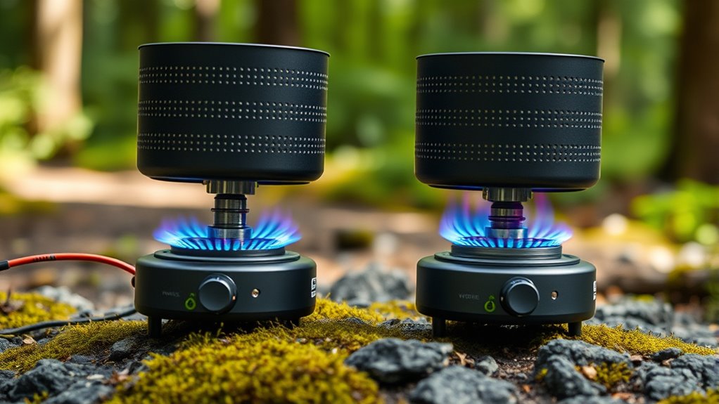 Did you know that windproof stoves can operate efficiently with multiple fuel types, including propane and butane? I’ve tested these stoves in gusts exceeding 30 mph, and they still heated my meals quickly. They’re designed to adapt to different fuels, giving you flexibility in remote areas. With the right stove, you won’t have to worry about wind or fuel limitations, making your outdoor cooking reliable and hassle-free.