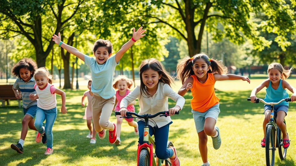 If you’re looking for fun and engaging ways to keep your kids active and healthy, fitness trackers are a fantastic option. I recommend considering devices like the BIGGERFIVE Smart Watch and Fitbit Ace 3, which combine activity tracking with heart rate and sleep monitoring. Plus, many models offer customizable features and parental controls. You’ll find that these trackers make staying active exciting for kids, and there’s so much more to explore about these devices and their benefits!