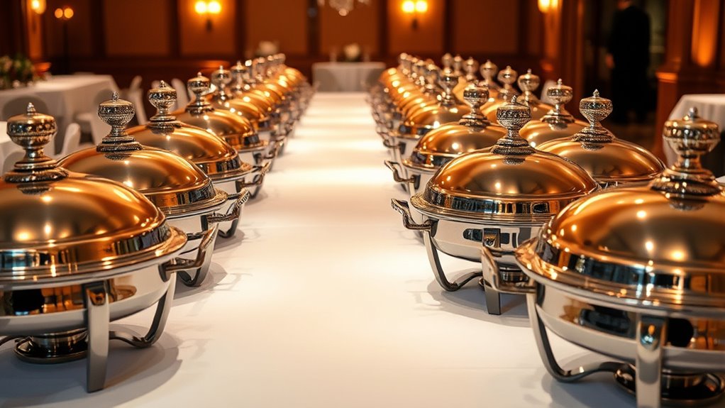 I’ve found that many chafing dish sets do offer customizable options, especially when you look beyond standard models. You can often choose different lid styles, handles, or even engraved designs to match your event’s theme. Sometimes, suppliers let you personalize the trays or add nameplates. It’s worth exploring brands that focus on bespoke catering equipment, so you can create a set that truly reflects your style and needs.
