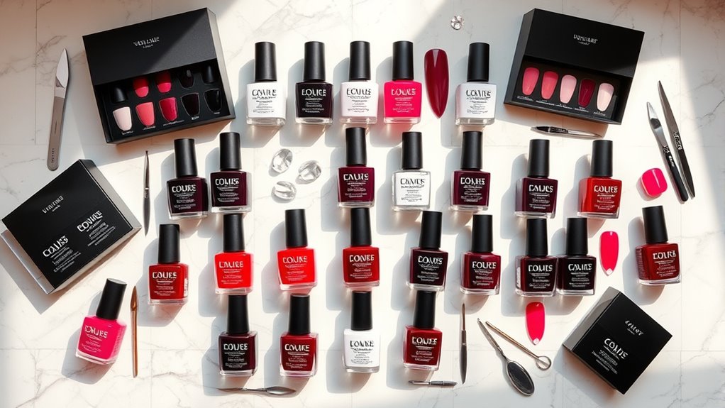 Finding the right gel nail polish starter kit goes beyond just color variety; it’s also about the tools and accessories included. I’ve learned that a thorough kit should have essential tools like nail files, buffers, cuticle pushers, and a manicure stick to prep your nails perfectly. While most kits include a UV or LED lamp—crucial for curing polish—look for additional accessories like nail decals or stickers to spark your creativity. It’s important that the kit contains base coats, top coats, and finishing products, as these ensure your manicure lasts longer. High-quality kits also feature safety and cleaning tools, like dehydrators and cleaning brushes, to keep your nails healthy and your application flawless.