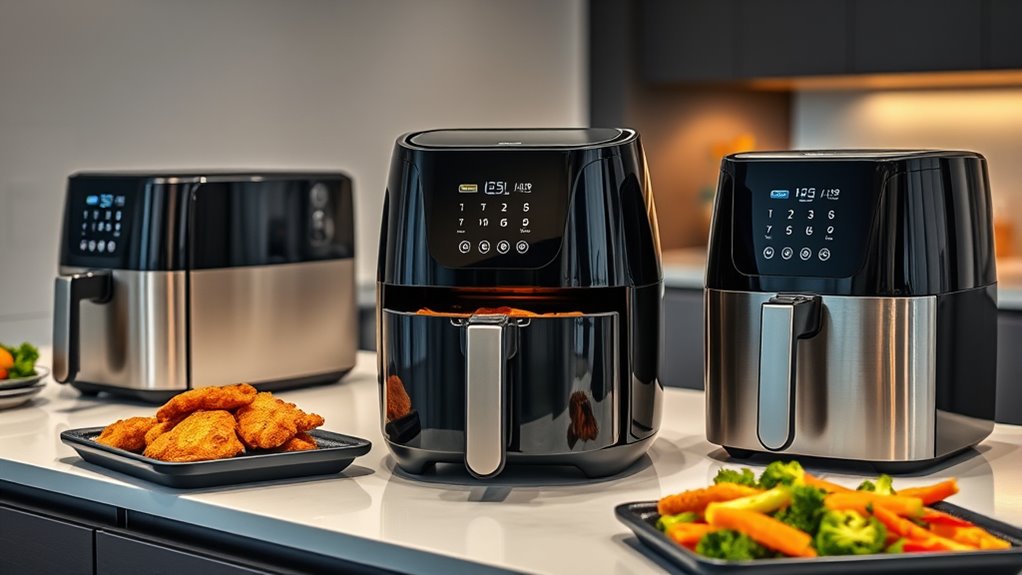 Think of halal-certified air fryers as trusted guides in a busy market. Yes, they’re available! I’ve seen several brands that proudly carry halal certification, ensuring they meet strict dietary standards. These appliances let you enjoy delicious, guilt-free meals without worry. Whether you’re craving crispy fries or flavorful snacks, halal-certified air fryers are a great addition to your kitchen, making healthy, tasty cooking both simple and reliable.
