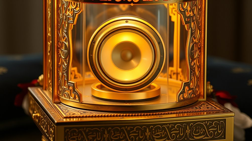 Luxury Quran speaker lamps are crafted from premium materials like polished wood, brass, and high-quality glass. I’ve noticed that the wood often features intricate carvings or fine veneers, adding a touch of elegance. The brass components provide durability and a luxurious feel, while the glass elements enhance the aesthetic appeal. These materials not only guarantee durability but also contribute to the lamp’s sophisticated look, making them perfect for spiritual spaces.