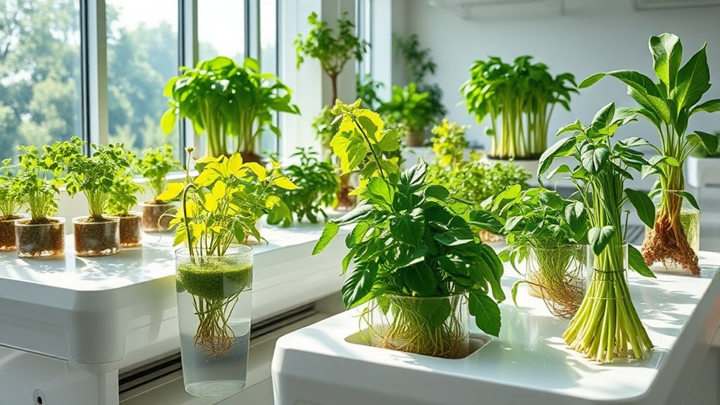 I’ve found that leafy greens, herbs, and strawberries thrive best in hydroponic systems. Lettuce, basil, and spinach grow quickly and don’t require much space, making them perfect for indoor gardens. I love watching them flourish! If you’re feeling adventurous, try growing tomatoes or peppers; they can also do well with the right care. Just remember to monitor the nutrient levels and light, and you’ll have a vibrant indoor garden in no time!
