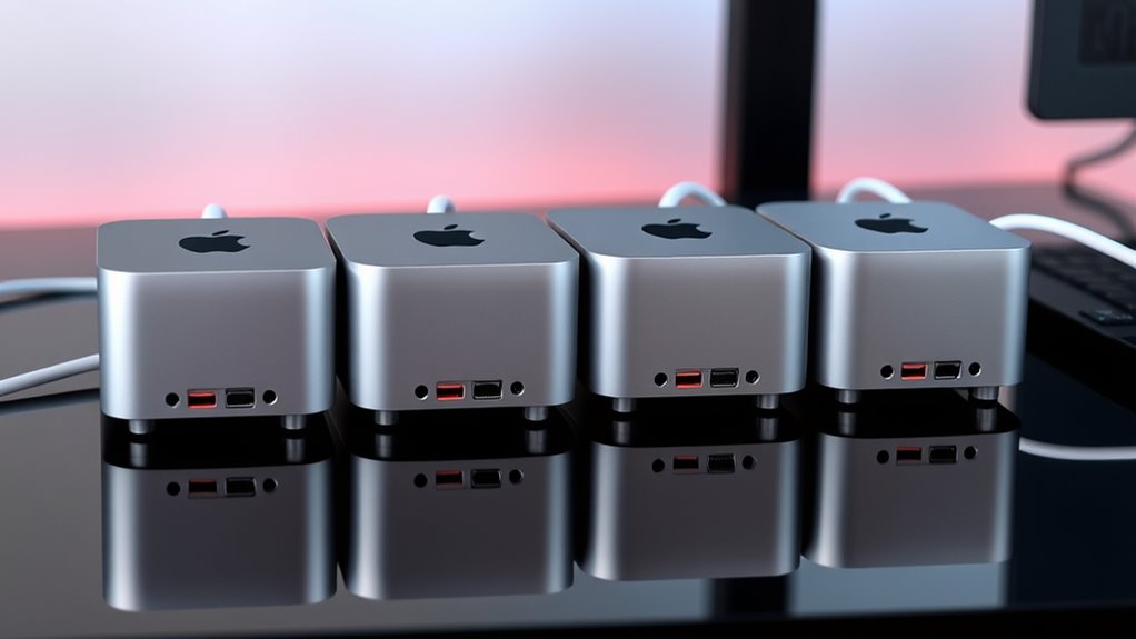 If you’re serious about speed and connectivity, these Mac mini models with 10GB Ethernet are a game-changer—almost like having a spaceship in your office, only without the teleportation. Whether you opt for the M4 or M4 Pro chip, you’ll get top-tier performance suited for any task. Just remember, in this fast-paced world, staying connected is key, so don’t wait for the future—grab one now and stay ahead of the curve.