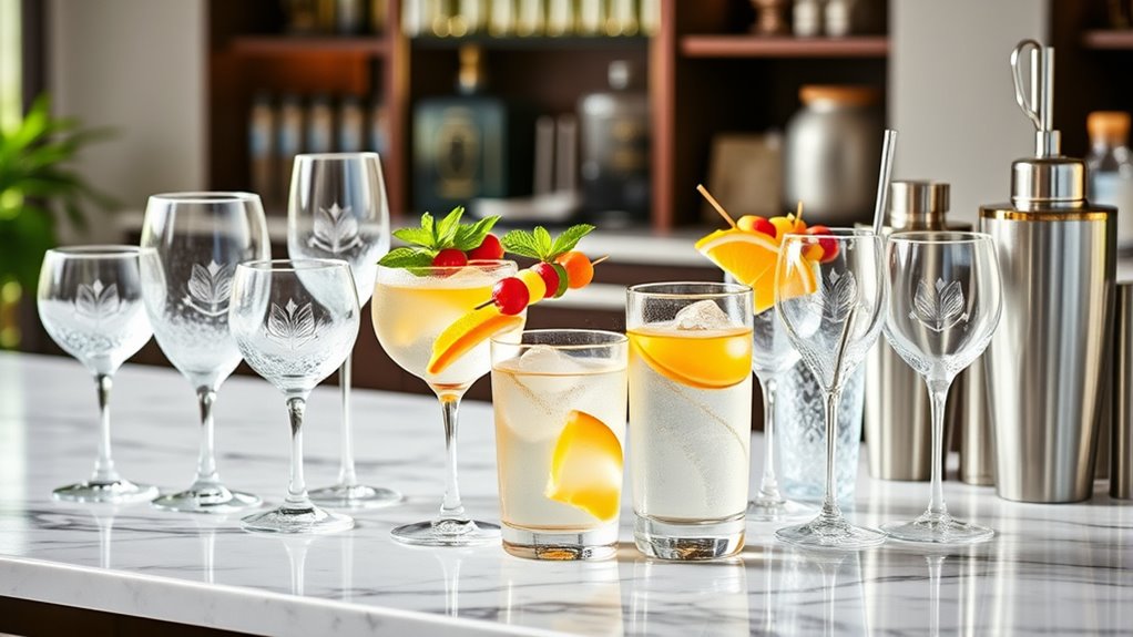 I recommend choosing barware made from high-quality stainless steel or thick, tempered glass. Stainless steel is incredibly durable, resistant to rust, and perfect for long-term use. Thick, tempered glass withstands impacts better than regular glass, reducing the risk of breakage. These materials guarantee your mocktail barware stays in great shape, looks stylish, and lasts through many gatherings, making your sipping experience both elegant and worry-free.