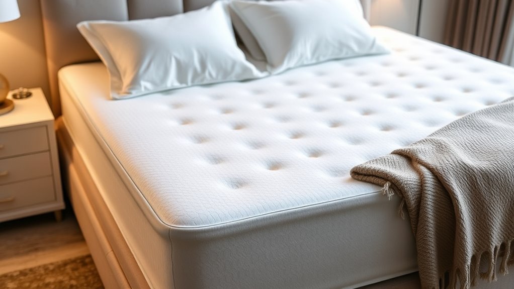 Imagine your mattress as a tiny, health-boosting superhero. Gel-infused memory foam isn’t just cooling fluff; it actively supports joint health, reduces pressure points, and improves circulation. I’ve found it helps with better sleep quality, less tossing, and fewer aches. So yes, gel-infused foam isn’t just a fancy trend—it’s like giving your body a gentle, cooling hug every night, promoting overall wellness and restful sleep.