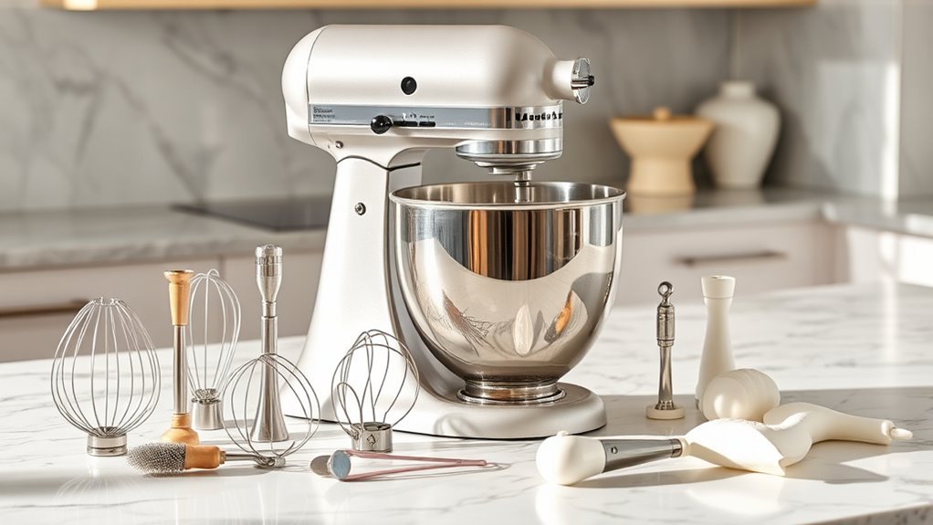 I know investing in premium attachments can seem pricey, but honestly, they’re worth every penny for the versatility and efficiency they bring to your baking. Think of it as upgrading your toolkit—once you have quality attachments, you’ll wonder how you ever baked without them. Don’t let the cost hold you back; the improved results and time saved make it a smart, satisfying choice for any serious home baker.