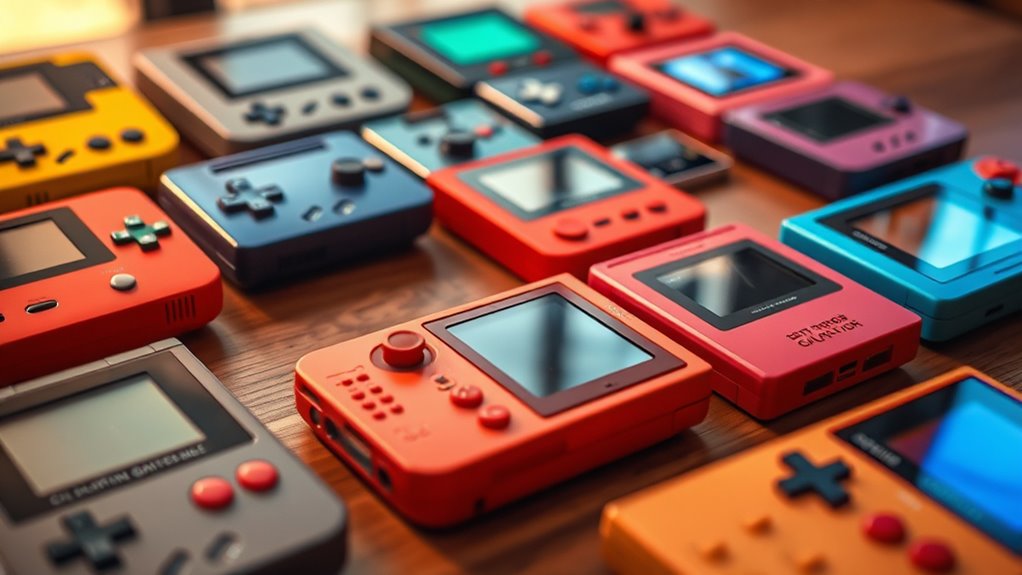 If you’re looking for the 14 best retro handheld gaming consoles of 2025, I’ve got you covered. These include upgraded models like the XF40H with a 4K HD screen, the G350 with a vast game library, the R40 with a 128GB card, and the versatile Retroid Pocket 5. Others feature long-lasting batteries, extensive emulation support, and portable designs. Keep going to discover the top options that will revive your nostalgia and elevate your gaming experiences.
