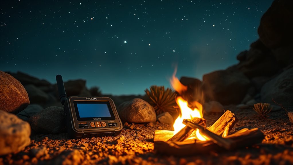 Satellite device batteries usually last between 12 to 48 hours depending on usage and model. I’ve found that conserving power by turning off unnecessary features and activating power-saving modes can extend battery life markedly. When I go off-grid, I always carry a portable charger or extra batteries to stay connected. It’s essential to check your device’s specifications and plan your charging needs accordingly to guarantee safety during your remote adventures.