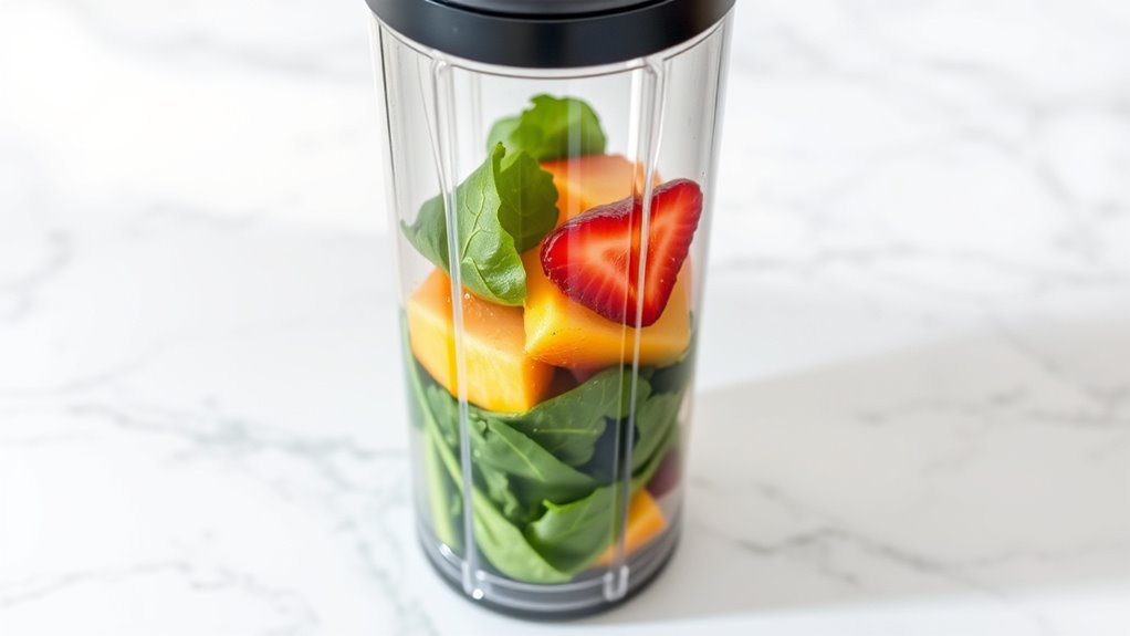 Maintaining the benefits of nutrient preservation technology depends not only on how well a vacuum blender can protect nutrients but also on how easy it is to keep the device clean. I look for models with removable, dishwasher-safe parts, which make cleaning quick and thorough without much effort. Smooth, flat blades with fewer grooves help prevent food residue from sticking, simplifying the process. Transparent, BPA-free containers allow me to inspect and clean them easily. Some blenders even feature self-cleaning functions that run automatically with soap and water, saving time. Additionally, I prefer designs with minimal crevices and well-sealed joints to prevent mold, bacteria, and leftover food buildup. These features make cleaning straightforward, ensuring my blender stays hygienic and ready for next use.