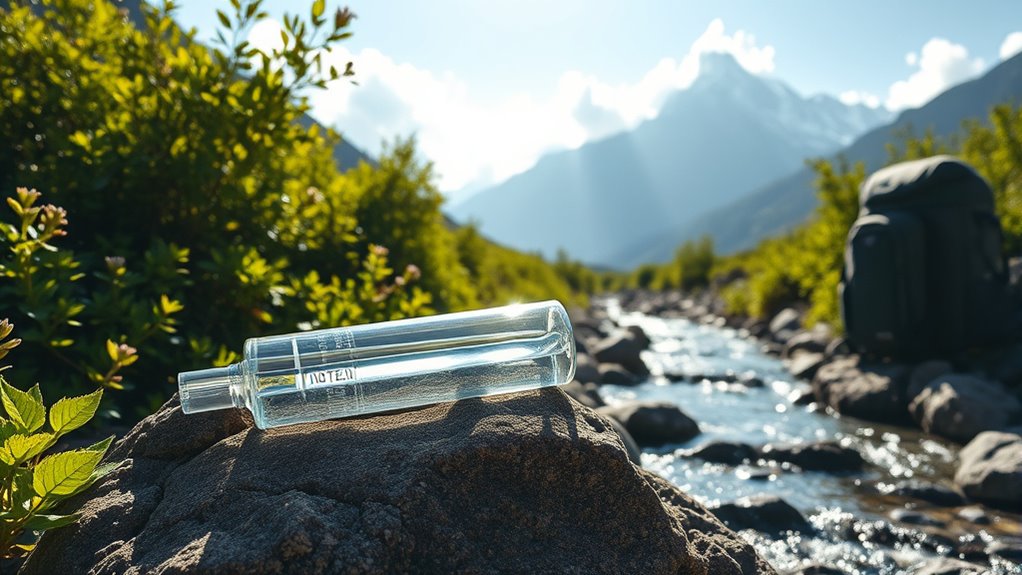 In summary, having a dependable water filtration straw can make all the difference in survival situations, and as the saying goes, “better safe than sorry.” Whether you’re hiking, camping, or facing an emergency, these tools guarantee you stay hydrated safely and efficiently. Remember to take into account factors like filtration capacity and portability when choosing the right one for your needs. With the right straw in hand, you can confidently tackle any adventure that comes your way!